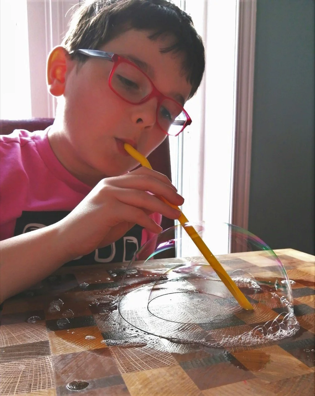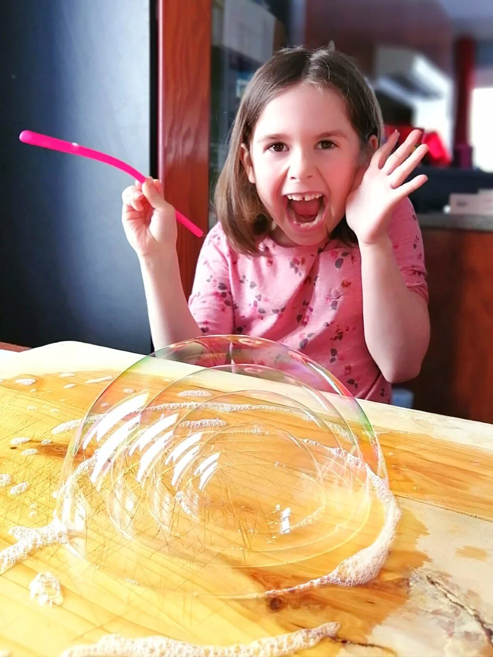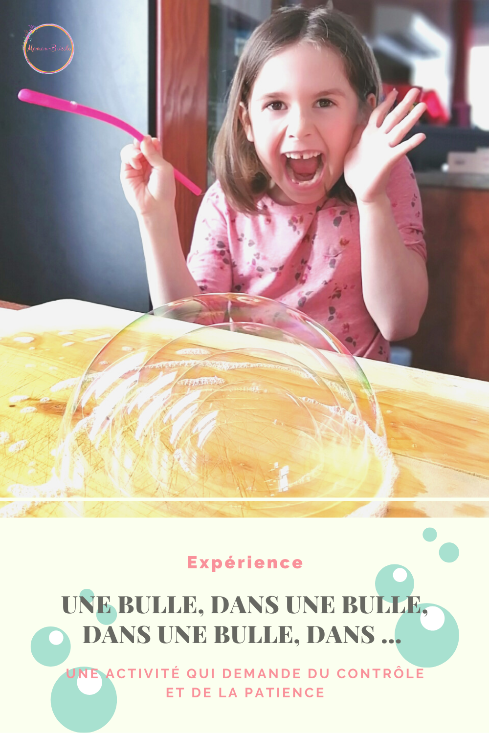 Dernièrement, une abonnée m'a partagé cette activité vue à l'émission Cochon Dingue de Télé-Québec. Faire des bulles, dans une bulle, dans une bulle, dans…Vous avez compris le principe hihi! C'est franchement impressionnant comme expérience à essayer! Ici, le maximum que nous avons réussi à faire, c'est 5 bulles l'une dans l'autre. Wow! C'est une activité qui demande du contrôle et de la patience. Parfait pour divertir la marmaille en effervescence! 😉